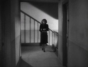 The priest then visits her home twice the day after her death. Each of the two visits, which appear back to back, open with a brief look at the priest’s journal. In the first, he writes in the present moment, recording simply that the woman has died, thereby introducing the whole sequence. However, the rest of the dialogue in the sequence—including another brief appearance of the journal between the two home visits—is in the past tense. After an initial moment in the present then, the rest of the action follows the priest’s writing about past events. This structural disjunction prepares the way for similar contrasts in both the visual approach and the acting of these scenes.